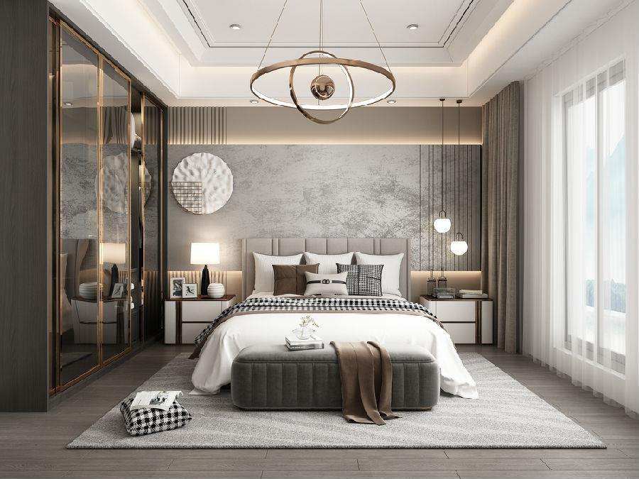 我们这款热装楼盘主要是针对我们主卧室的设计,由图可见,卧室整体颜色以灰色为主,显得非常的高雅大气,颜色也不是很杂,给人一眼望去就很清爽、高贵的体感。地砖和墙砖,整体线条一看就没有瑕疵,整齐、美观。